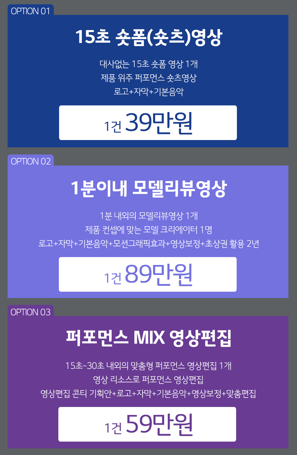 Ä¿¸Ó½º ÀüȯÀÇ ÆÛÆ÷¸Õ½º¸¦ ³»±â À§Çؼ´ÂÀϹÝÀûÀÎ ¿µ»ó¸¸ ¸¸µå´Â ȸ»ç¿¡ ¸Ã°Ü¼´Â ¾ÈµË´Ï´Ù.¸ð¹ÙÀÏ SNS ȯ°æ¿¡ ÃÖÀûÈµÇ¸é¼ ºê·£µå¿¡ ÀûÇÕÇÑ ¼ôÆû(¼ôÃ÷), Ä¿¸Ó½º¿µ»óÀ» Á¦°øÇÕ´Ï´Ù. ¸¶ÄÉÆÃ Àü·« ºÐ¼®¹× Á¦Ç°¿¡ ´ëÇÑ ÀÌÇØµµ°¡ ³ôÀº ºñµð¿ÀÄ¿¸Ó½º,ÀúÈñ´Â ÀüȯÀÌ ³ª¿À´Â SNS ¼ôÆû(¼ôÃ÷), ·ÕÆû(¸ðµ¨¸®ºä), ´Ù¾çÇÑ ÆÛÆ÷¸Õ½º¿µ»ó Á¦ÀÛ¸¸ ¸¸µé¾ú½À´Ï´Ù!